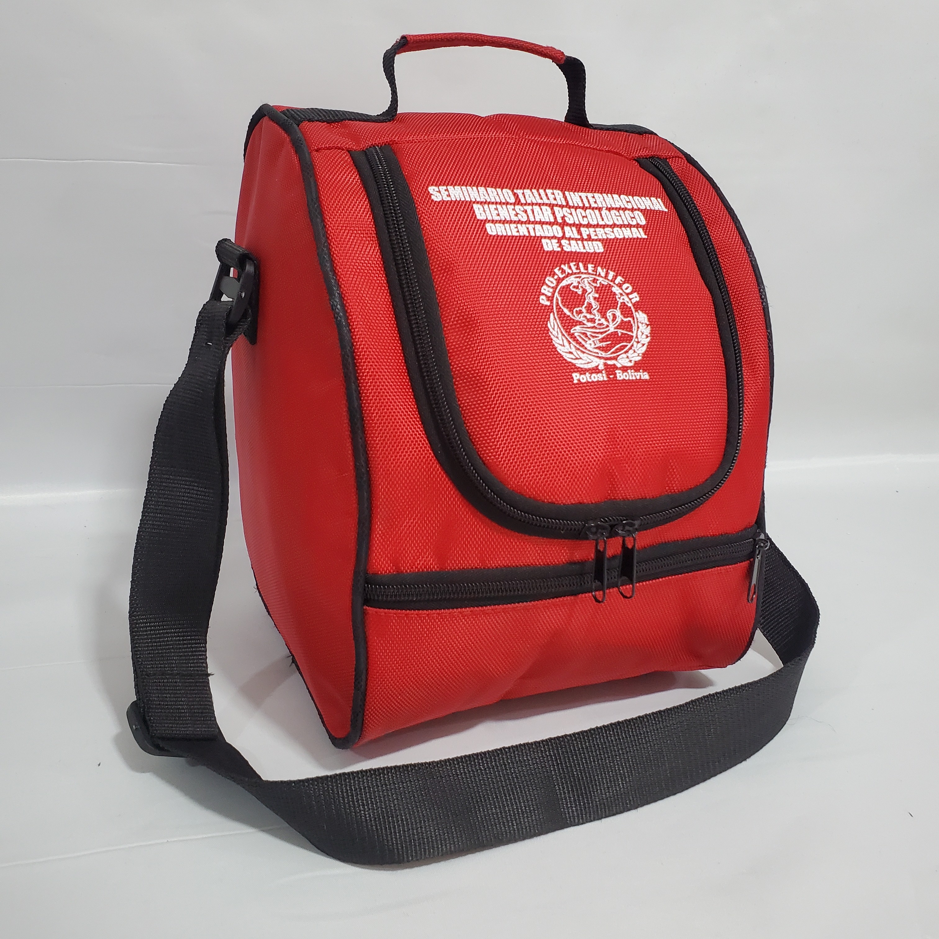Lonchera, espaciosa con correa regulable, aza y doble compartimento.