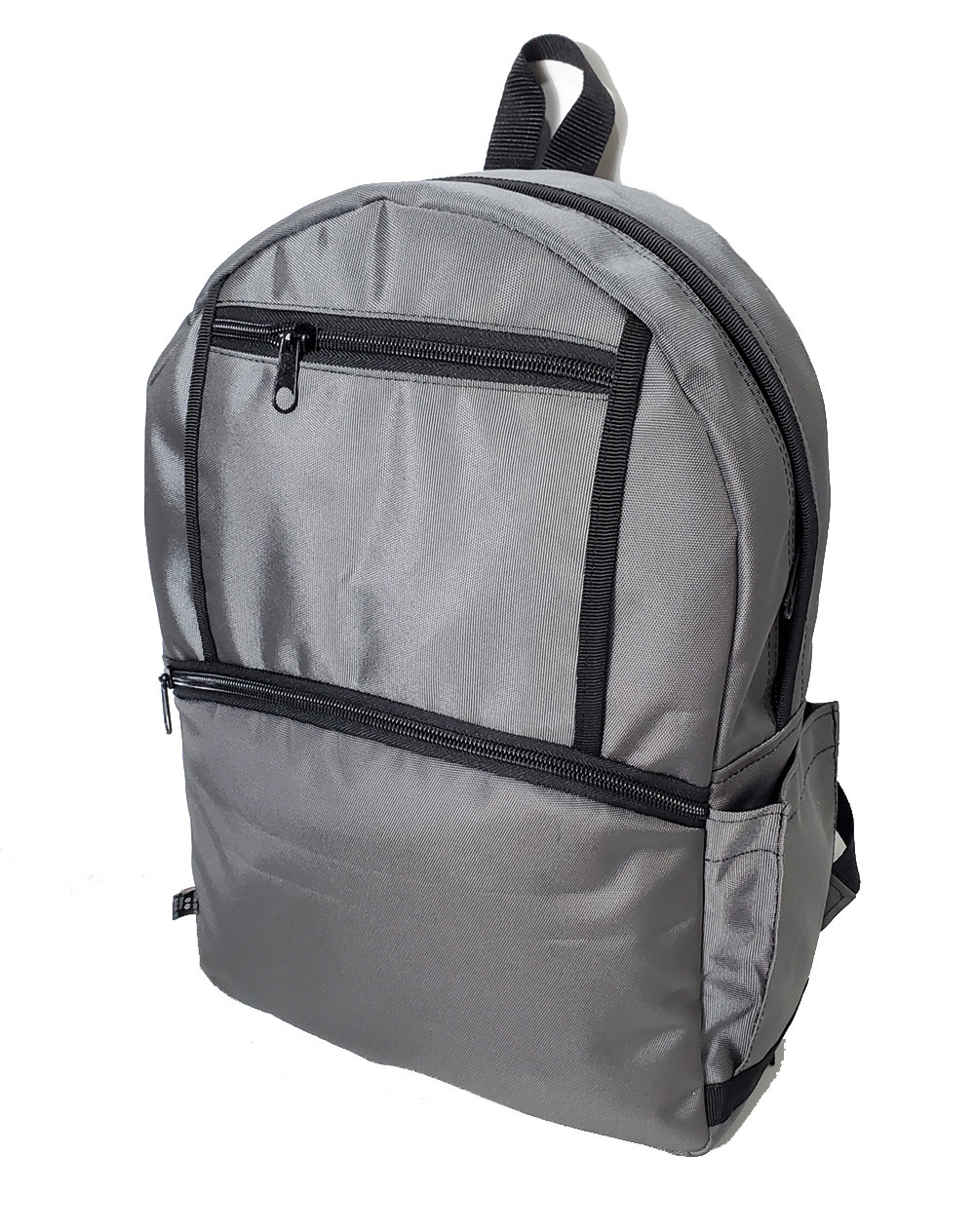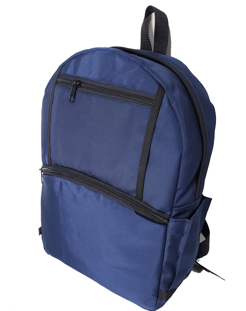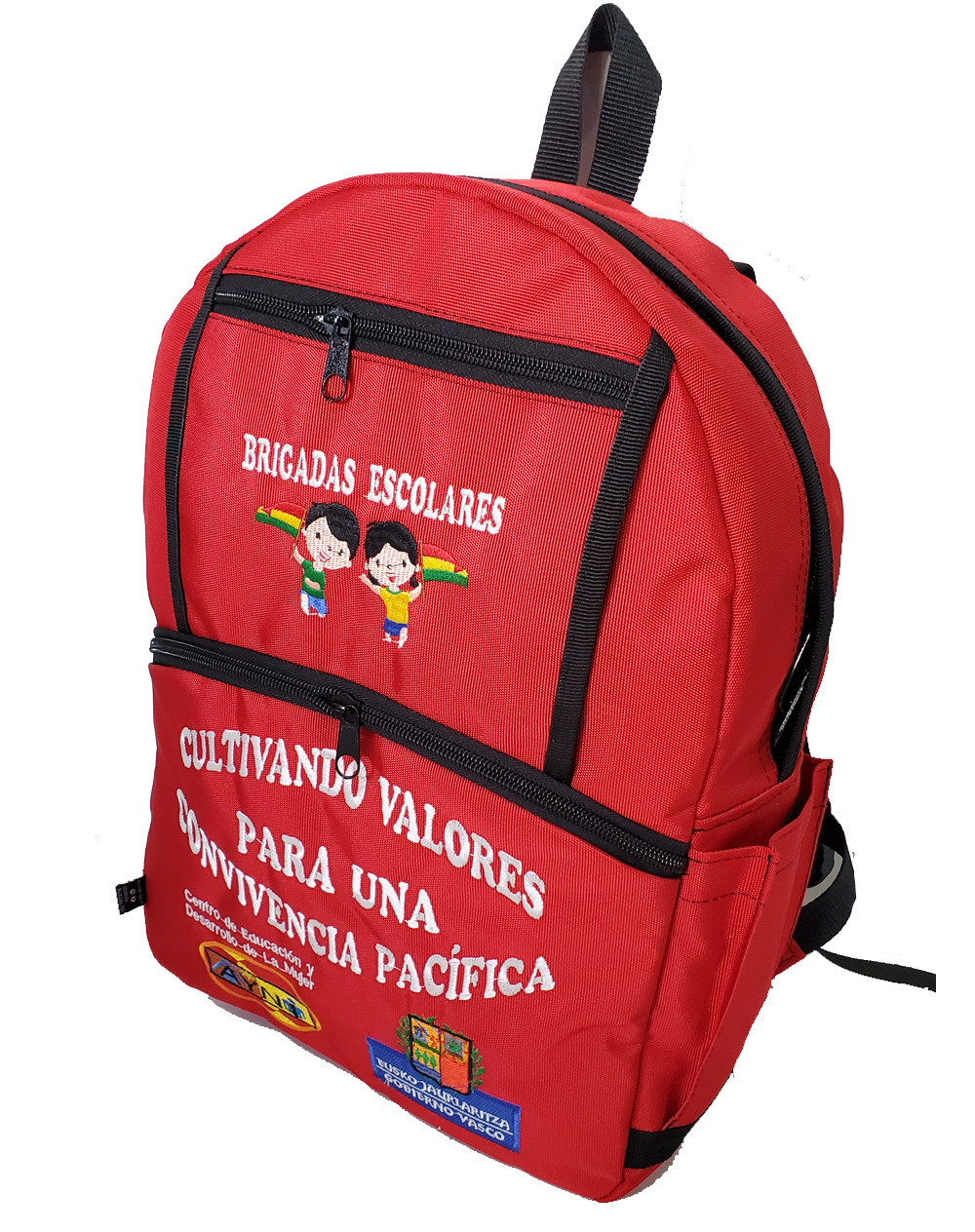 Mochila tamaño Oficio, con espaldar y hombreras acolchadas, cuerpo principal con cierre de doble sentido y bolsillos externos con cierre.